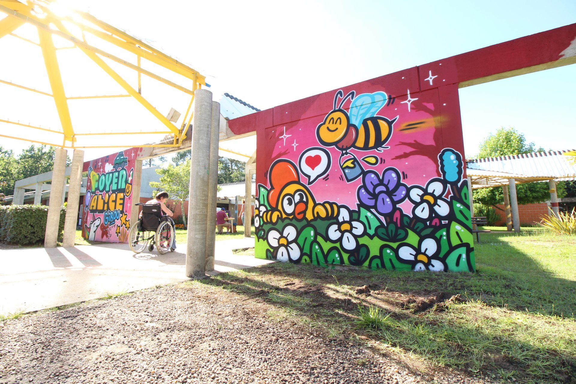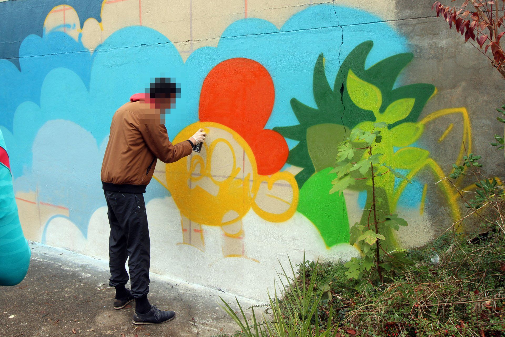 Le foyer Alice Girou accueille des adultes en situation de handicap. Herenui et Marina, aides médico-psychologiques dans cette institution, organisent régulièrement des sorties Street Art avec les résidents. Malgré l’attrait et l’engouement autour de cette activité, cette année de pandémie ne leur a pas permis de sortir autant qu’ils l’auraient souhaité. Néanmoins, la communication virtuelle entre elles et nous ne s’est pas coupée et le projet de venir investir le lieu de vie des résidents est né. Peindre, oui, mais pas sans l’accueil, l’aide, la participation, la bonne humeur et les sourires de tous ceux qui nous ont accueilli chez eux.