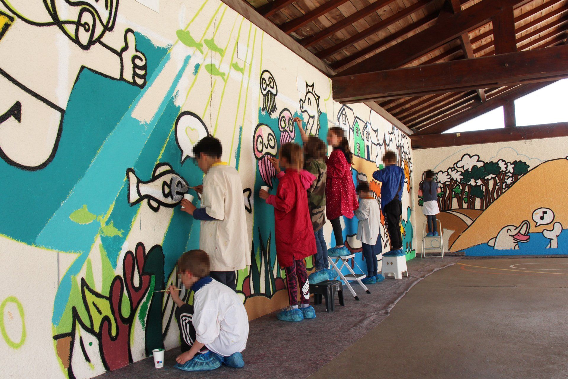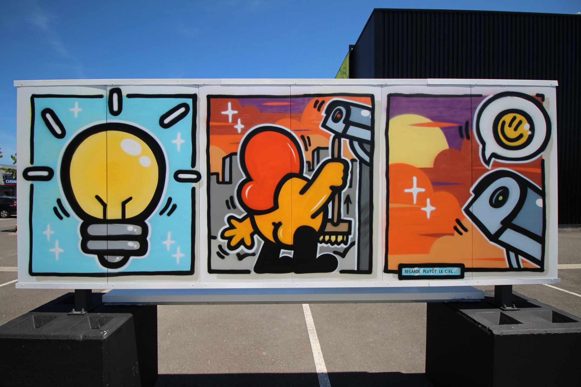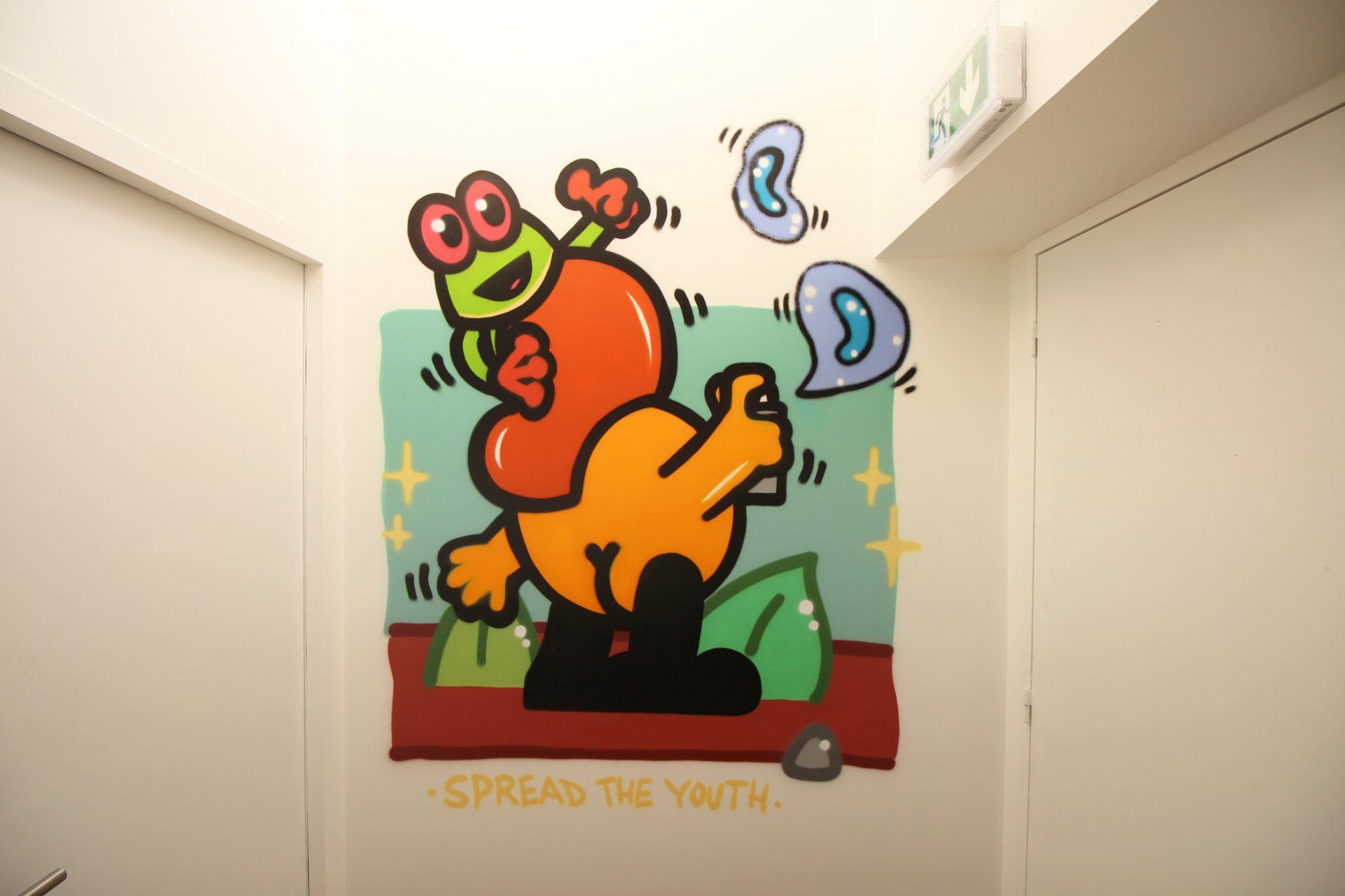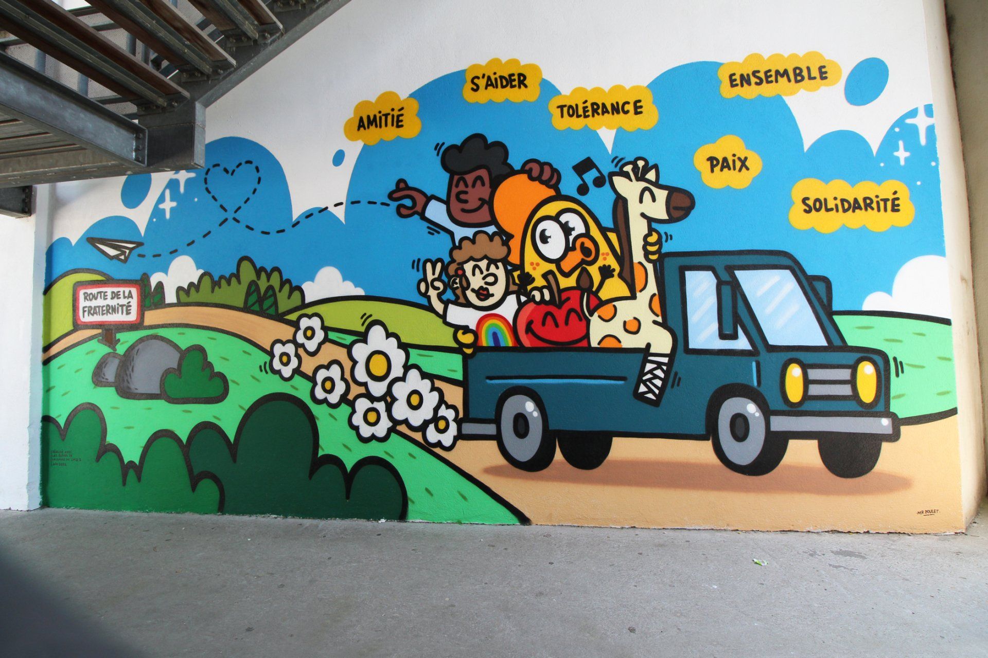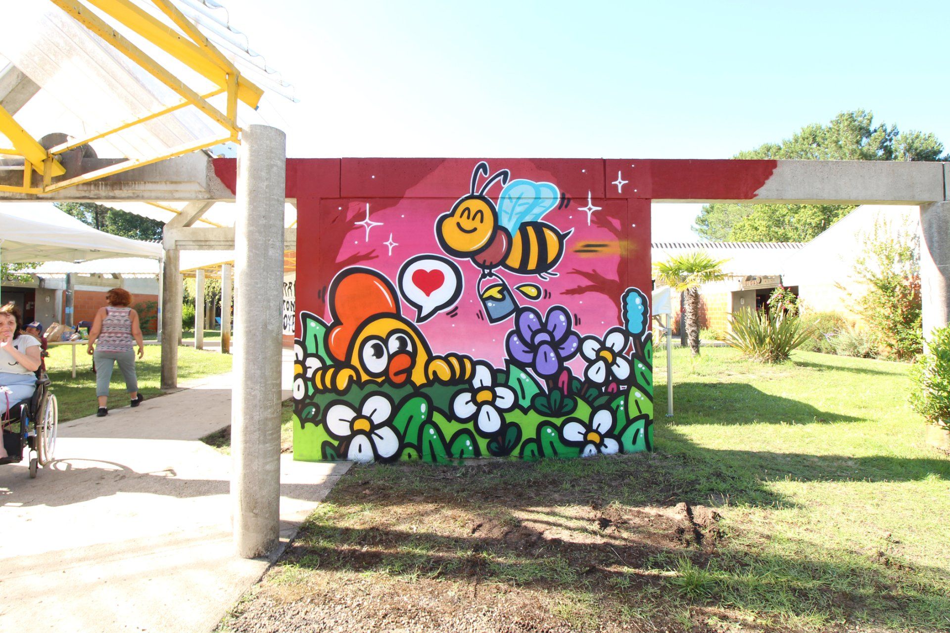 Cette fresque a été financée par l'Association Aladin, qui est engagée pour le bien-être des enfants hospitalisés.