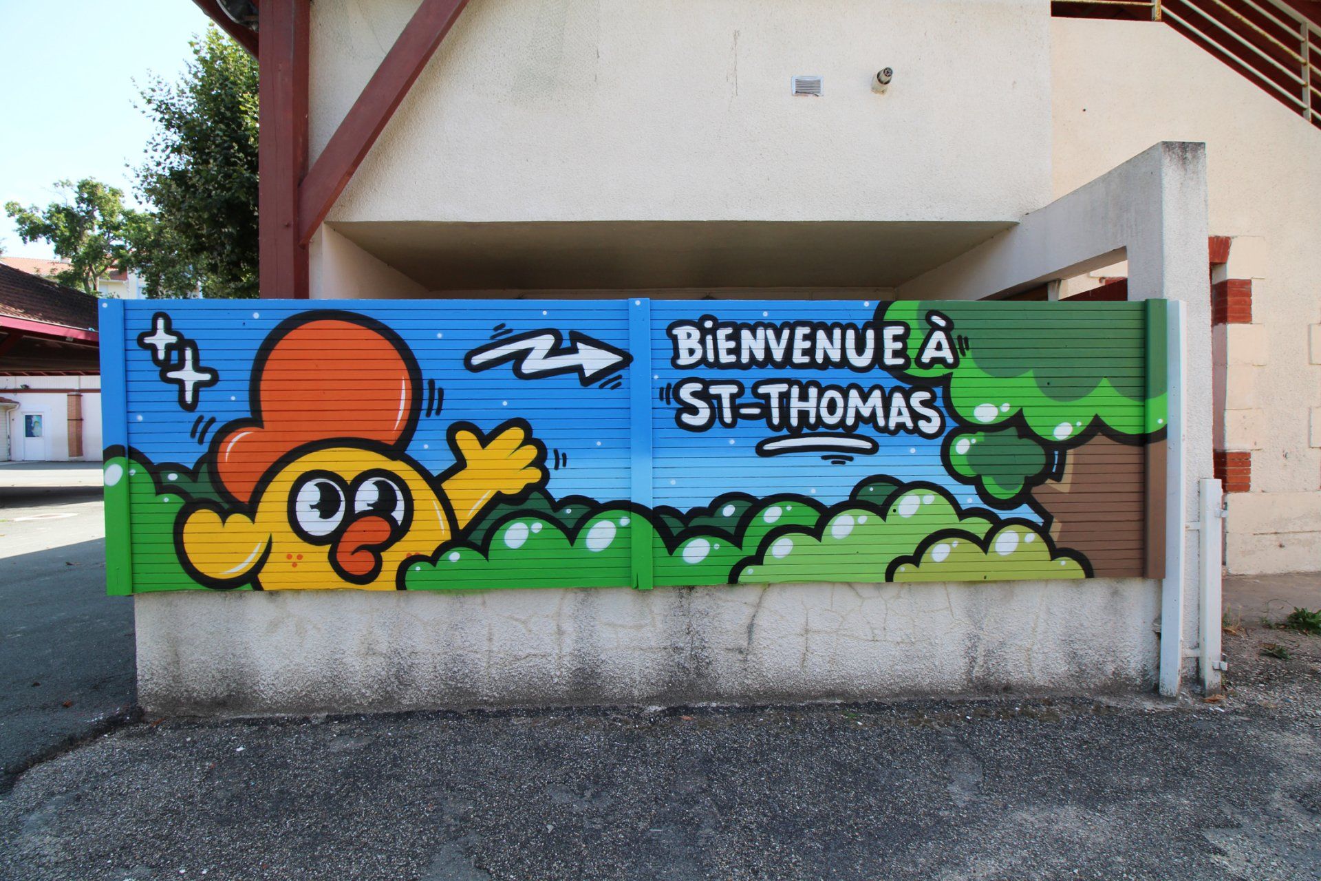 On m'a confié la réalisation de peintures dans la salle de motricité ainsi que dans l'entrée de l'école de St-Thomas à Arcachon. C'est toujours une joie de peindre ce genre de lieux. J'espère que les enfants imagineront plein d'histoires incroyables quand ils croiseront ces peintures !