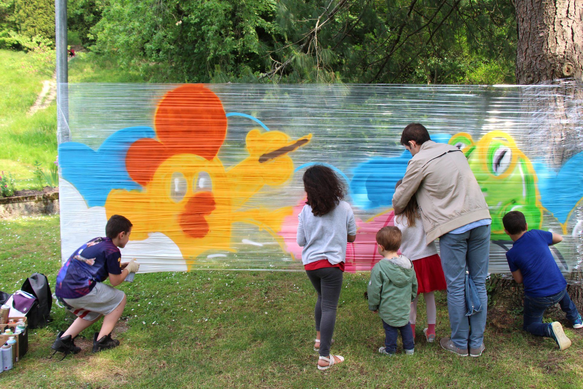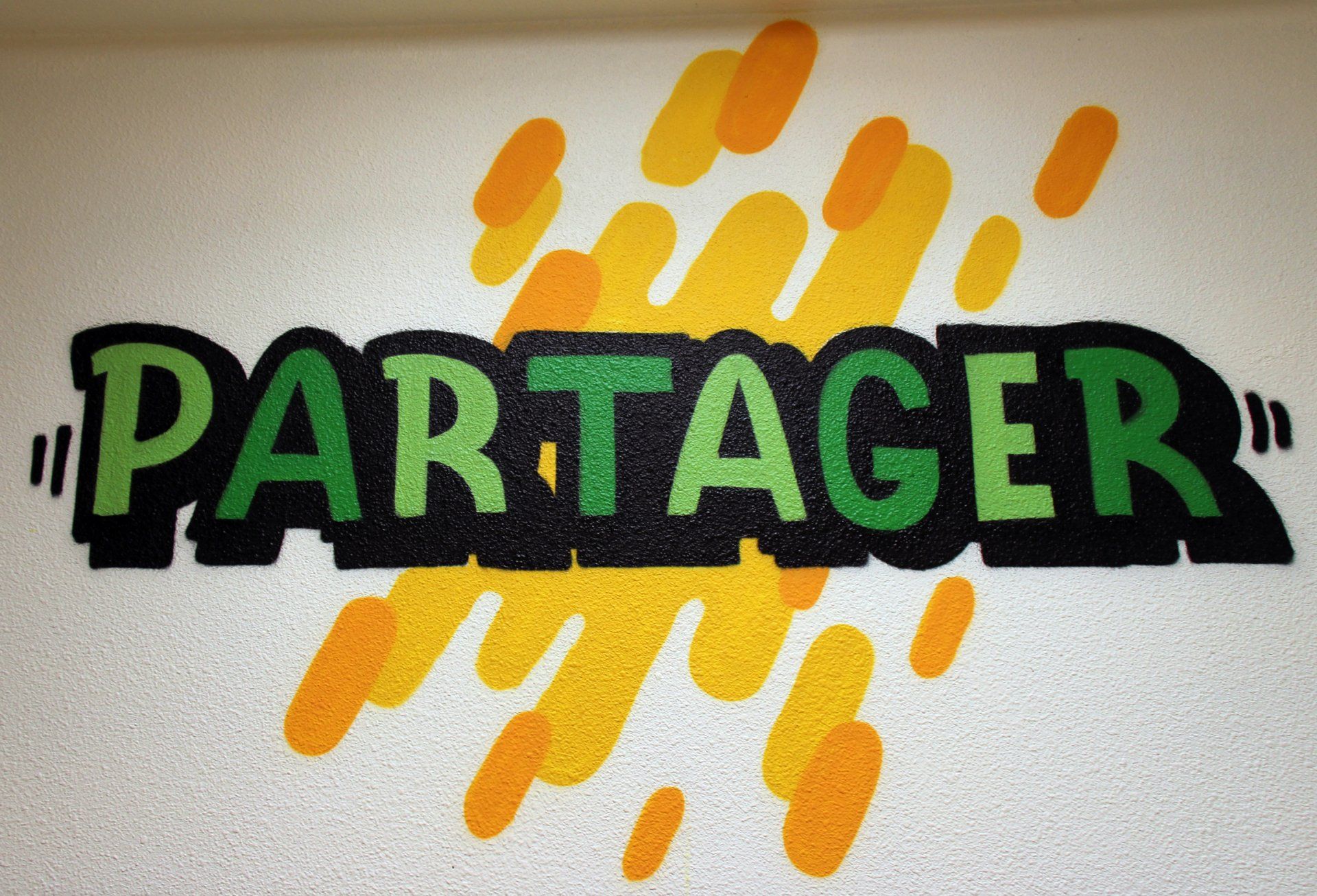 Avec la participation des bienveillantes professionnelles Sylvie et Christelle nous avons, plusieurs journées durant, travaillé dur pour réaliser cette fresque. Et tout ça dans la bonne humeur (et le hip-hop).